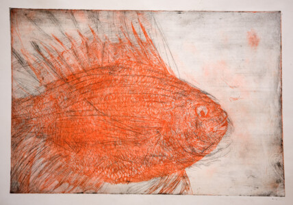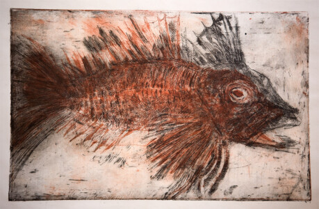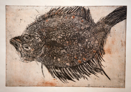 Anne Peeters exploite les possibles de l’estampe par des “natures-mortes”. Ses prétextes sont souvent des poissons moins sordidement cadavériques que d’autres immobiles séchés ou empaillés. (Elle a toujours habité à proximité de poissonneries). Elle met parfois ses sujets en scène, au frigo, dans une attitude tendue par des élastiques. Mais le temps de la création s’étend, la pose prendra fin dans une insupportable odeur. En résultent des polychromies étudiées, incisives, enlevées, dynamiques, expressives – jamais inertes – une méditation d’un calme paradoxal en regard des visions de nature vive ou de dépôts culturels tramées dans l’immédiat. L’art relève du plaisir de faire, jeu d’enfant ou persévérance d’adulte dont l’enjeu demeure un secret personnel. Anne Peeters ne grève son œuvre d’aucun discours. Son silence sert un art vivant, indifférent aux conventions de la société post-moderne.