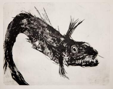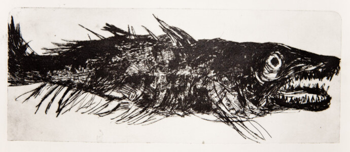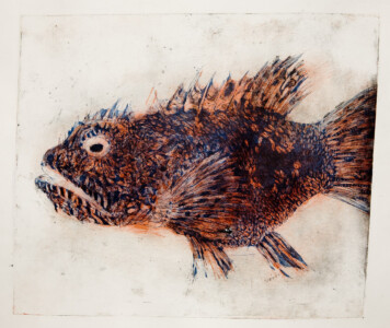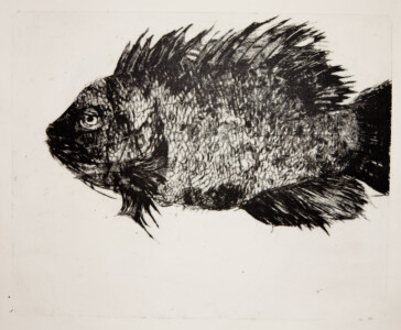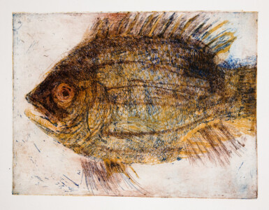 Anne Peeters exploite les possibles de l’estampe par des “natures-mortes”. Ses prétextes sont souvent des poissons moins sordidement cadavériques que d’autres immobiles séchés ou empaillés. (Elle a toujours habité à proximité de poissonneries). Elle met parfois ses sujets en scène, au frigo, dans une attitude tendue par des élastiques. Mais le temps de la création s’étend, la pose prendra fin dans une insupportable odeur. En résultent des polychromies étudiées, incisives, enlevées, dynamiques, expressives – jamais inertes – une méditation d’un calme paradoxal en regard des visions de nature vive ou de dépôts culturels tramées dans l’immédiat. L’art relève du plaisir de faire, jeu d’enfant ou persévérance d’adulte dont l’enjeu demeure un secret personnel. Anne Peeters ne grève son œuvre d’aucun discours. Son silence sert un art vivant, indifférent aux conventions de la société post-moderne.