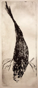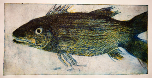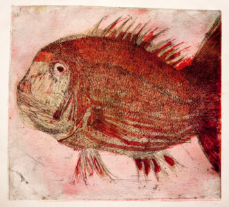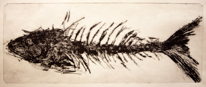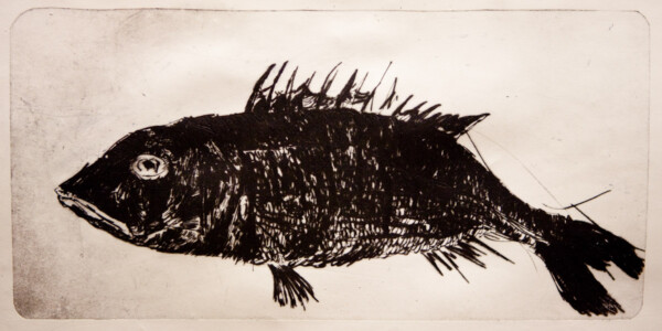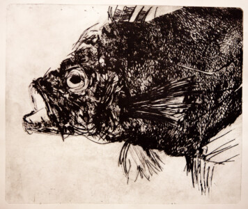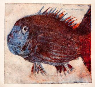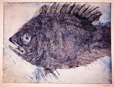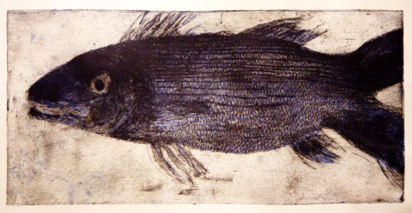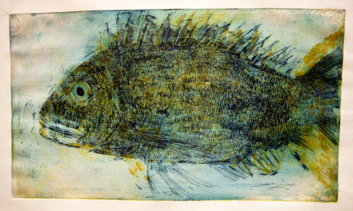 Anne Peeters exploite les possibles de l’estampe par des “natures-mortes”. Ses prétextes sont souvent des poissons moins sordidement cadavériques que d’autres immobiles séchés ou empaillés. (Elle a toujours habité à proximité de poissonneries). Elle met parfois ses sujets en scène, au frigo, dans une attitude tendue par des élastiques. Mais le temps de la création s’étend, la pose prendra fin dans une insupportable odeur. En résultent des polychromies étudiées, incisives, enlevées, dynamiques, expressives – jamais inertes – une méditation d’un calme paradoxal en regard des visions de nature vive ou de dépôts culturels tramées dans l’immédiat. L’art relève du plaisir de faire, jeu d’enfant ou persévérance d’adulte dont l’enjeu demeure un secret personnel. Anne Peeters ne grève son œuvre d’aucun discours. Son silence sert un art vivant, indifférent aux conventions de la société post-moderne.