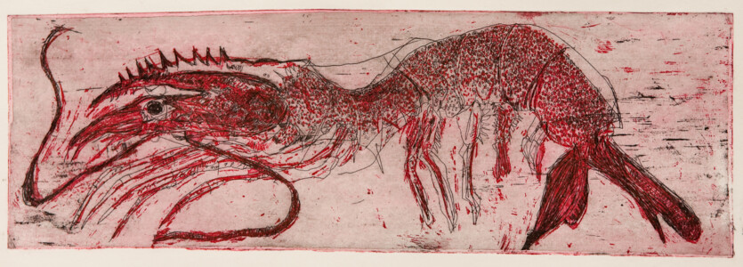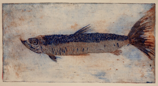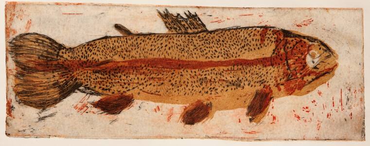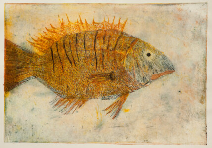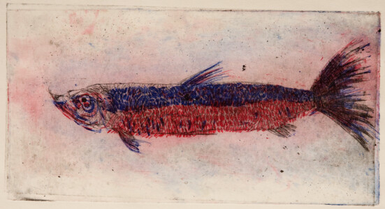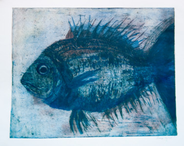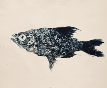 Anne Peeters exploite les possibles de l’estampe par des “natures-mortes”. Ses prétextes sont souvent des poissons moins sordidement cadavériques que d’autres immobiles séchés ou empaillés. (Elle a toujours habité à proximité de poissonneries). Elle met parfois ses sujets en scène, au frigo, dans une attitude tendue par des élastiques. Mais le temps de la création s’étend, la pose prendra fin dans une insupportable odeur. En résultent des polychromies étudiées, incisives, enlevées, dynamiques, expressives – jamais inertes – une méditation d’un calme paradoxal en regard des visions de nature vive ou de dépôts culturels tramées dans l’immédiat. L’art relève du plaisir de faire, jeu d’enfant ou persévérance d’adulte dont l’enjeu demeure un secret personnel. Anne Peeters ne grève son œuvre d’aucun discours. Son silence sert un art vivant, indifférent aux conventions de la société post-moderne.
