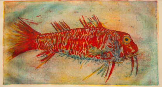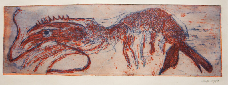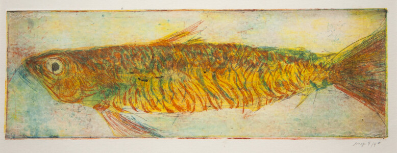 Anne Peeters exploite les possibles de l’estampe par des “natures-mortes”. Ses prétextes sont souvent des poissons moins sordidement cadavériques que d’autres immobiles séchés ou empaillés. (Elle a toujours habité à proximité de poissonneries). Elle met parfois ses sujets en scène, au frigo, dans une attitude tendue par des élastiques. Mais le temps de la création s’étend, la pose prendra fin dans une insupportable odeur. En résultent des polychromies étudiées, incisives, enlevées, dynamiques, expressives – jamais inertes – une méditation d’un calme paradoxal en regard des visions de nature vive ou de dépôts culturels tramées dans l’immédiat. L’art relève du plaisir de faire, jeu d’enfant ou persévérance d’adulte dont l’enjeu demeure un secret personnel. Anne Peeters ne grève son œuvre d’aucun discours. Son silence sert un art vivant, indifférent aux conventions de la société post-moderne.