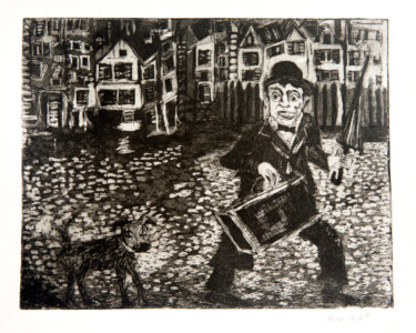 Anne Peeters dessine depuis l’enfance. Elle a peint à l’huile pendant une décennie au cours de Maria Brouillard. Elle s’est attachée à l’estampe dans l’atelier d’Anne Kellens à l’Ecole des Arts d’Ixelles, que fréquentait sa partenaire d’un théâtre d’ombres. Ce fut d’abord le noir et blanc radical du lino, puis l’expérimentation progressive du sensible par la pointe-sèche, l’eau-forte, l’aquatinte, enfin le retour à la couleur, du clair au sombre en glacis et transparences, par deux ou trois impressions surimposées : dix nouvelles années de création plastique en parallèle à une carrière de comédienne- marionnettiste à laquelle des études accomplies de philologie slave ne la destinaient guère.
